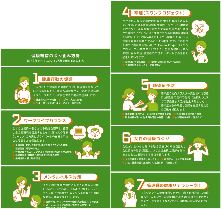 ・健康経営宣言後、健康経営優良法人2023・2024(大規模法人部門)と2年連続で認定を受けた。