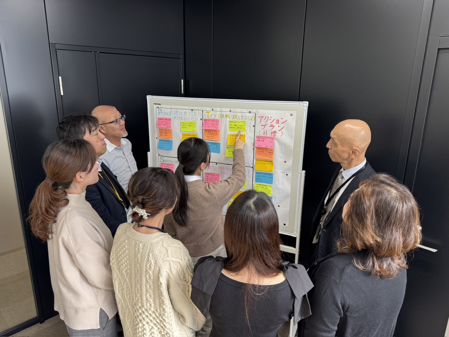 2週間に1回実施しているのが「アクションラーニング」で、従業員の成長やメンタルケアに貢献しています。これは、一人ひとりが前回立てた目標に対して「誇りに思うこと・残念に思うこと・挑戦したいこと・助けてほしいこと」の4つの視点で語ります。参加者は賞賛したり、一緒に悩みについて考えたりしながら次回の目標を設定します。就業時間内に1時間程かけて行うのですが、信頼関係が深まり、周囲から認めてもらっていると実感できます。また、次回までに達成すべきことも明確になり、モチベーションの向上や生産性の向上につながっています。