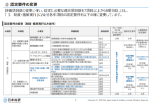 2.認定要件の変更: 新しい評価項目が追加されたことに伴い、認定に必要な選択要件数が変更されました。