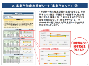 中小企業の多くは、「健康経営の必要性は感じているものの、何から始めればいいか、高度な取り組みが必要になるのではないか」という懸念をお持ちかと思います。そのような課題にむけて、健康宣言のハードルを下げ、どんな企業様であっても健康経営への取り組みを始められるような支援をしています。具体的には、各企業の健康状態を見える化した「事業所カルテ」の提供や、健康づくりに対する無料講座などを提供しています。ここ数年は特に、食生活の改善やメンタルヘルスに関する講座が好まれます。さまざまな「まずはここからやってみよう」を提供していますので、ぜひお問合せください。